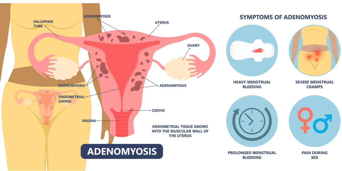 Adenomiosis memiliki kondisi yang mirip dengan endometriosis karena dapat menimbulkan gejala yang serupa atau tidak bergejala sama sekali.