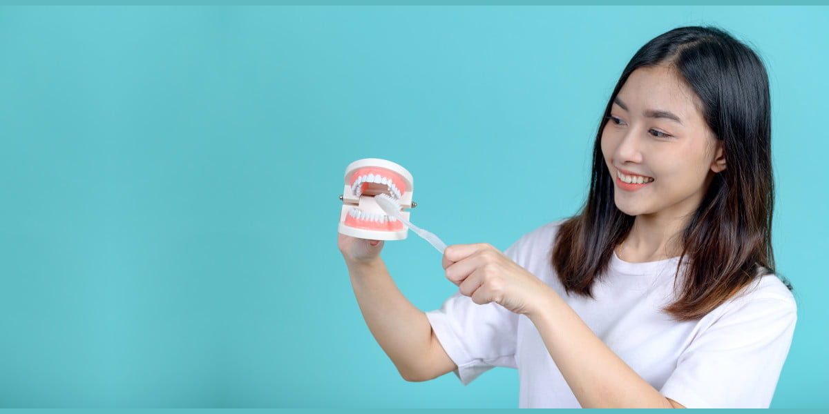 - Memakai gigi palsu dengan ukuran yang tidak pas serta tidak bersih